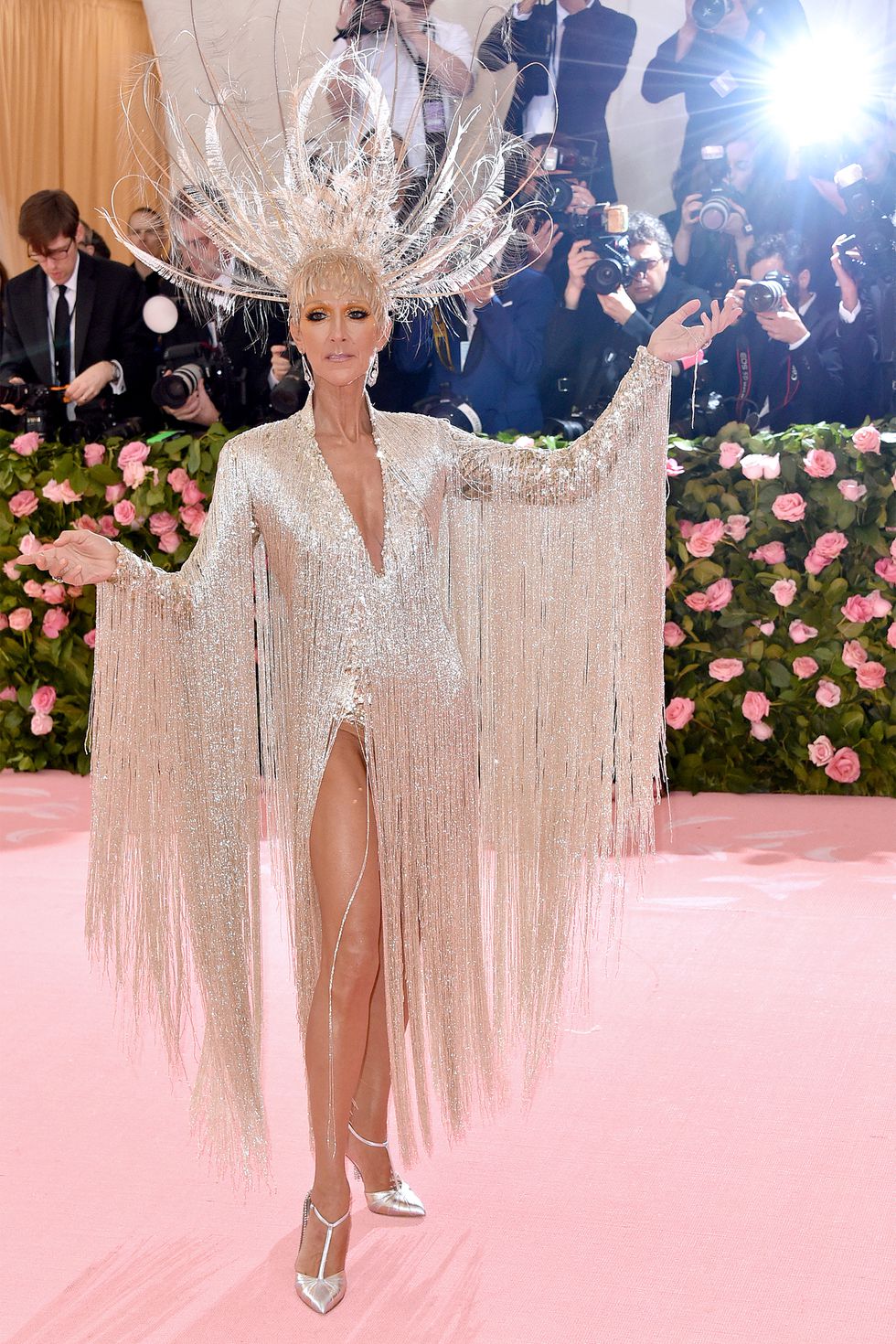 5.  Celine Dion stole the show in a metallic fringed romper and a spiky headpiece