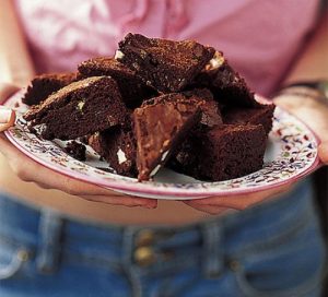 A chocolate brownie is a square, baked, chocolate dessert. It comes in a variety of forms and may be either fudgy or cakey. They may include nuts, frosting, cream cheese, chocolate chips, or other ingredients