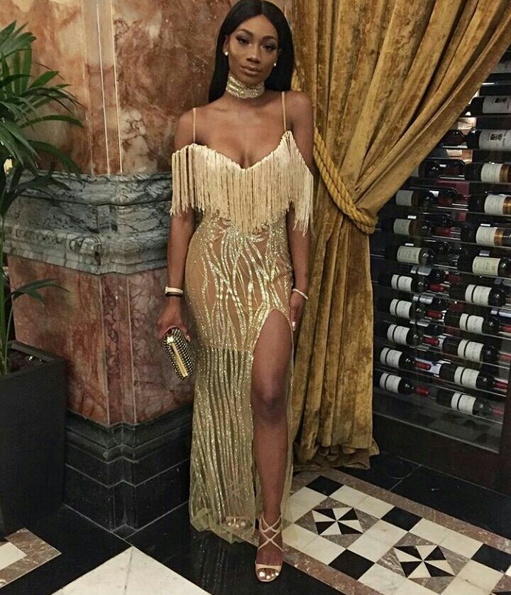 5. This gold fringed dress looks so exquisite.