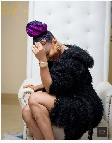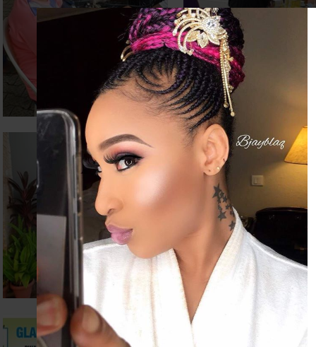 Tonto Dikeh is quite famous for her colored weaves and wigs so we are not surprised to see her rocking colored braids.