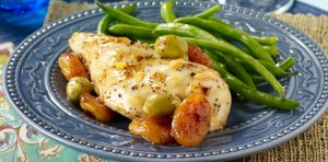 Chicken contains a good quantity of healthy proteins and fats, especially when the chicken is skinned. Vegetables always help to quicken the digestive process of proteins, therefore this combination is a very filling meal that does not leave you bloated.
