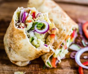 This is like a modified shawarma, especially if you are using flatbread. Flatbread and wheat bread are healthy alternatives for white bread. You can either decide to make a veggie wrap, filling it with coleslaw ingredients or salad ingredients.