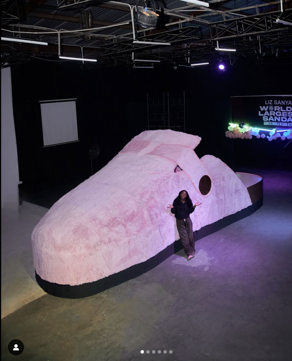On the 5th of January 2025, British-Nigerian designer Liz Sanya holds the Guinness World Record for the world’s largest sandal, measuring 8.14 m (26 ft 8 in) long and 3.15 m (10 ft 4 in) wide.