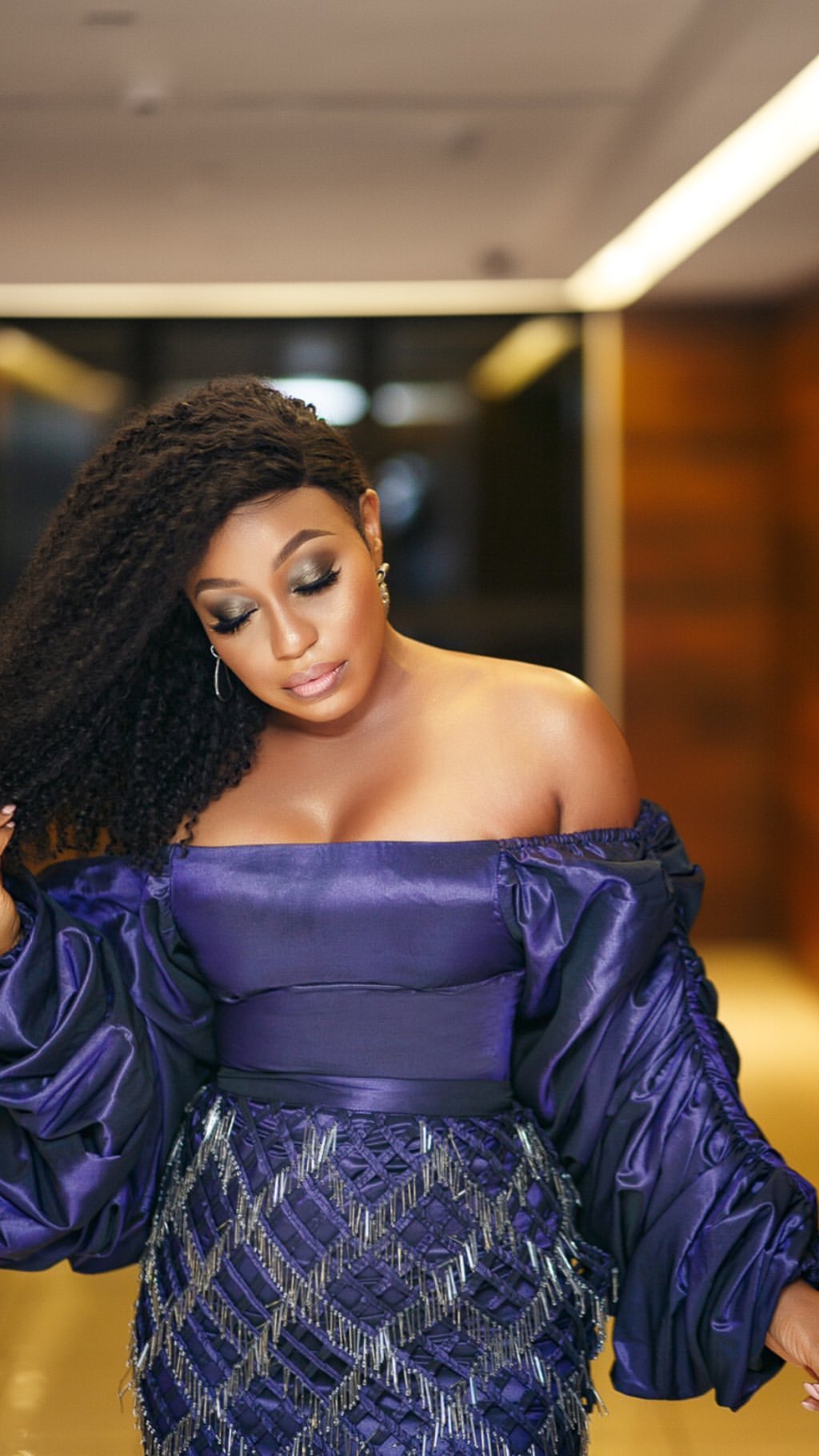 The movie star stepped out last night for two events, the 2019 UBA CEO Awards and Bovi’s ‘Man on Fire’ Comedy Show. While she could only attend one, the long Lagos nights did not stop her from completely killing it in a gorgeous purple Tiffany Amber piece.