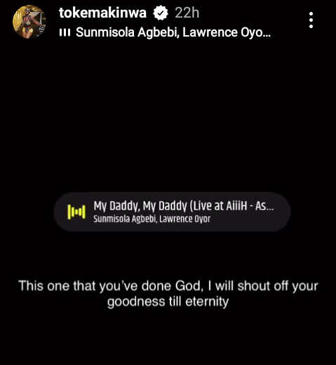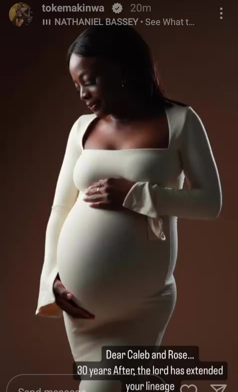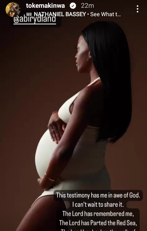 The media personality took to her Instagram story to repost Busayo’s pregnancy video and photos, thanking God for their testimony.