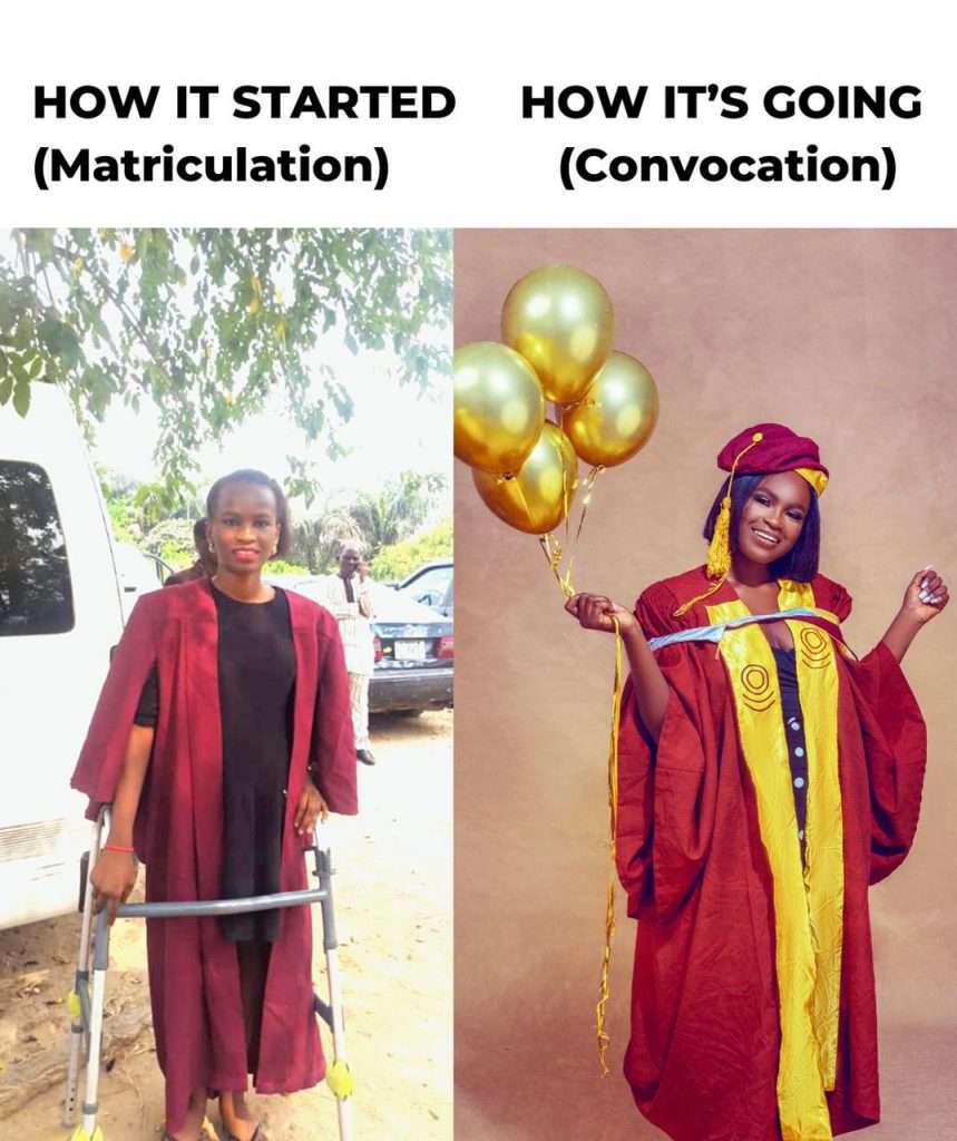 A Nigerian lady named Joy has shared her lemons to lemonades story as she graduates from the University of Lagos.