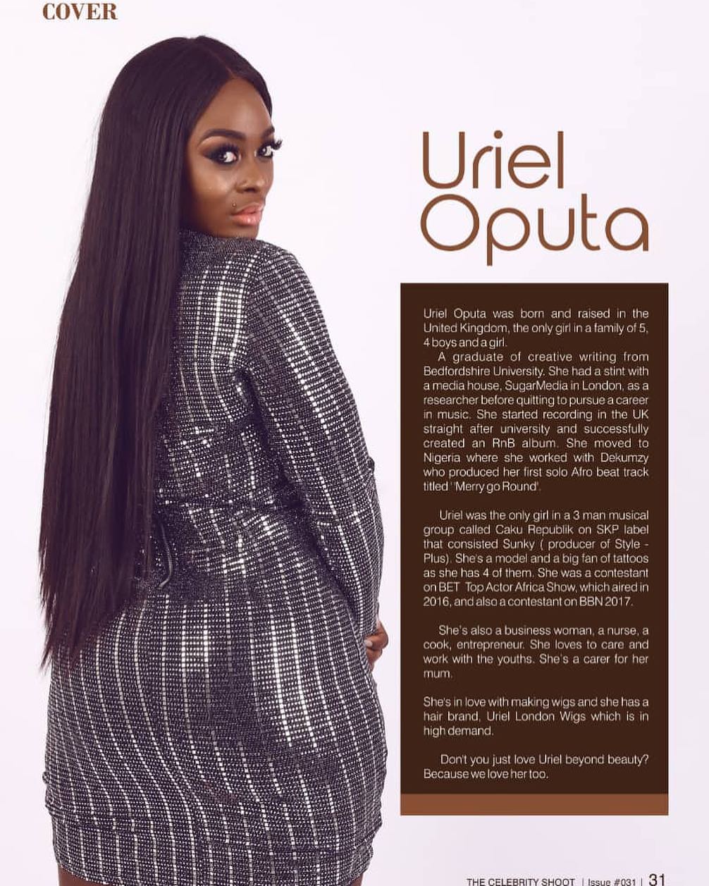 Big Brother Naija 2017 housemate, Uriel Oputa is the cover star for the latest issue of Abbyke Domina‘s Celebrity Shoot Magazine.